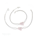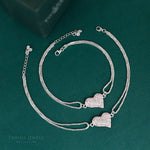 A graceful symbol of tradition and romance, the Shahi Parampara Payal is designed to add a soft royal charm to your every step. Featuring a delicate double-chain silver design with a heart-shaped enamel charm accented with shimmering stones, this anklet reflects elegance with a modern ethnic touch.