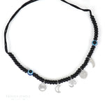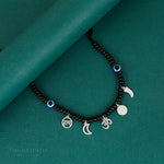 A sacred expression of protection and spiritual elegance, the Shubh Raksha Sutra is inspired by traditional Indian symbols of positivity and well-being. Designed with a classic black-beaded thread, this sutra is adorned with protective charms including the evil eye, Om, crescent moon, and sacred motifs that bring a sense of balance and meaning.