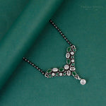 Crafted in 92.5 hallmarked silver and handcrafted by skilled Indian artisans, this mangalsutra reflects fine artistry and thoughtful craftsmanship. The contrast of traditional black beads with the vibrant colored accents and polished silver finish creates a harmonious balance of heritage and modern sophistication, while ensuring a lightweight and comfortable feel for everyday wear.