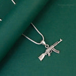 A bold expression of strength and fearless individuality, the Valor Rifle Silver Pendant is designed to symbolize courage, protection, and powerful character. Featuring a finely detailed rifle motif suspended from a sleek silver chain, this pendant reflects confidence and a striking modern edge while maintaining timeless elegance.